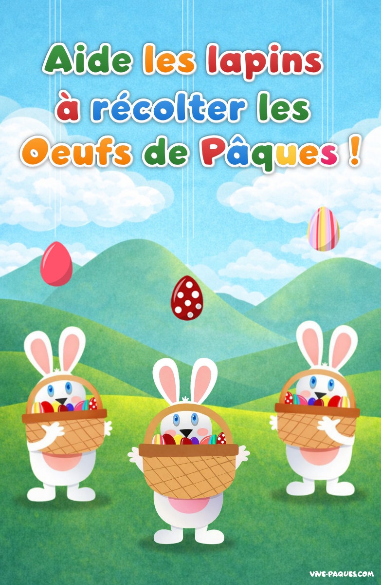 Au centre de l’écran, un lapin attend avec son grand panier. Dès que tu cliques avec la souris ou que tu touches l’écran, deux lapins apparaissent à gauche et à droite pour attraper les œufs qui tombent sur les côtés. Ton objectif est de déclencher le bon mouvement au bon moment afin d’en récupérer un maximum.