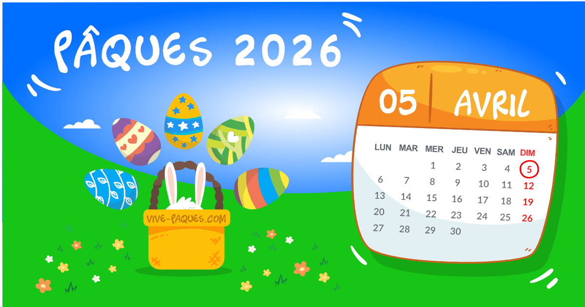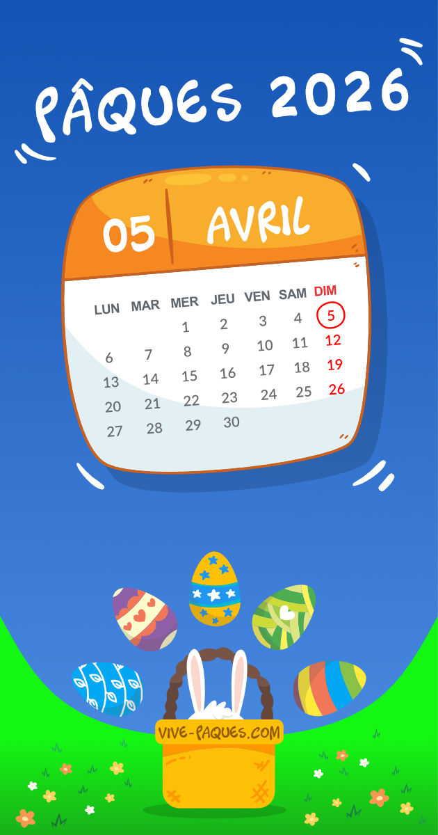 Cette année, le jour de Pâques est le DIMANCHE 05 AVRIL 2026 pour les catholiques et les protestants, et le DIMANCHE 12 AVRIL 2026 pour les orthodoxes.